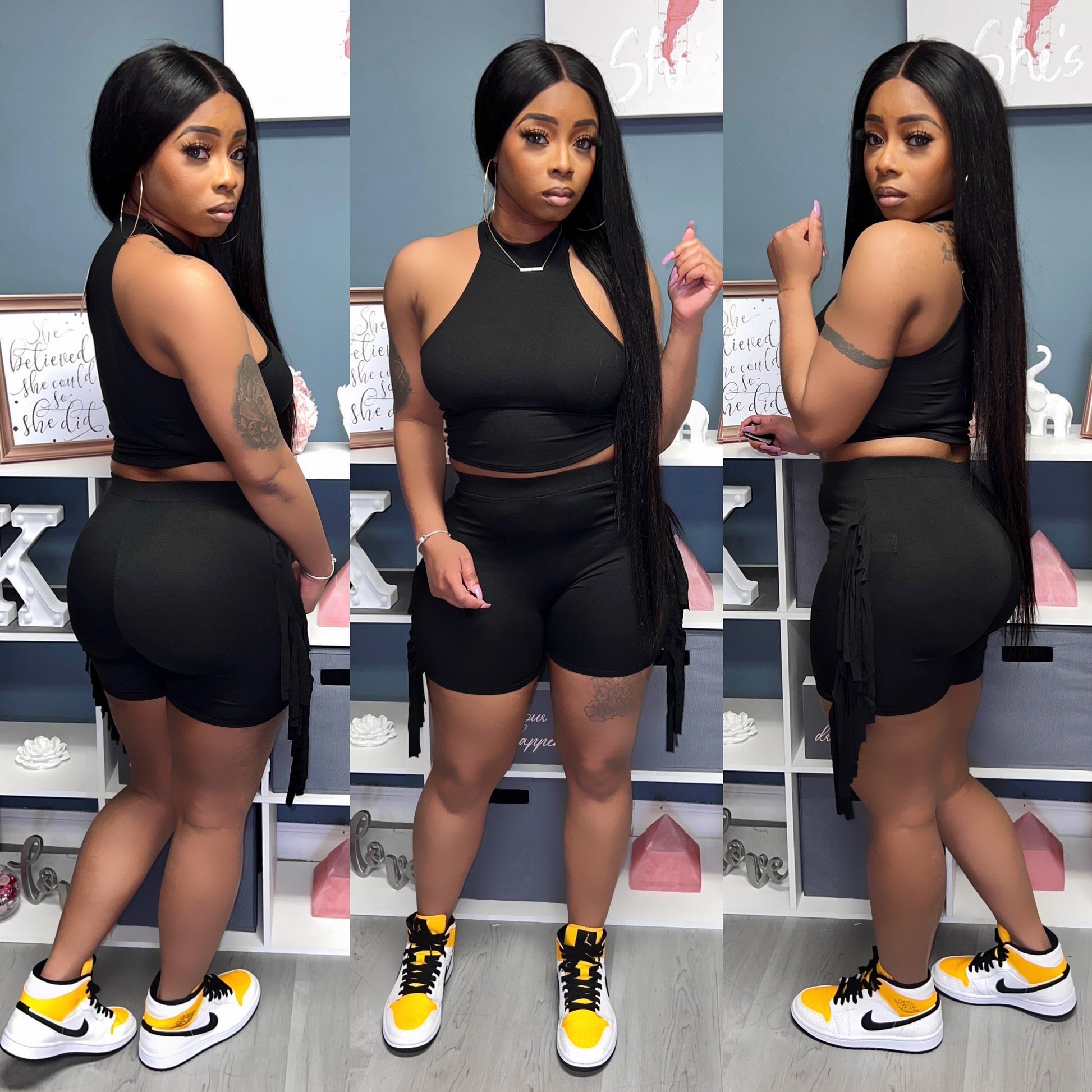 “Keeping Me Fringed” (Black) Short Set